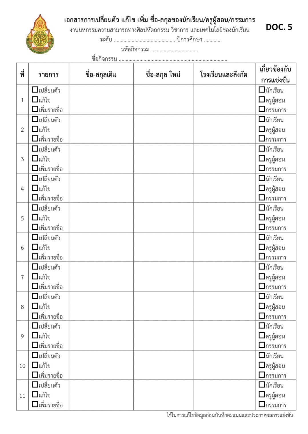 รายการสีเขียวคือมีโรงเรียนเข้าร่วมการแข่งขัน